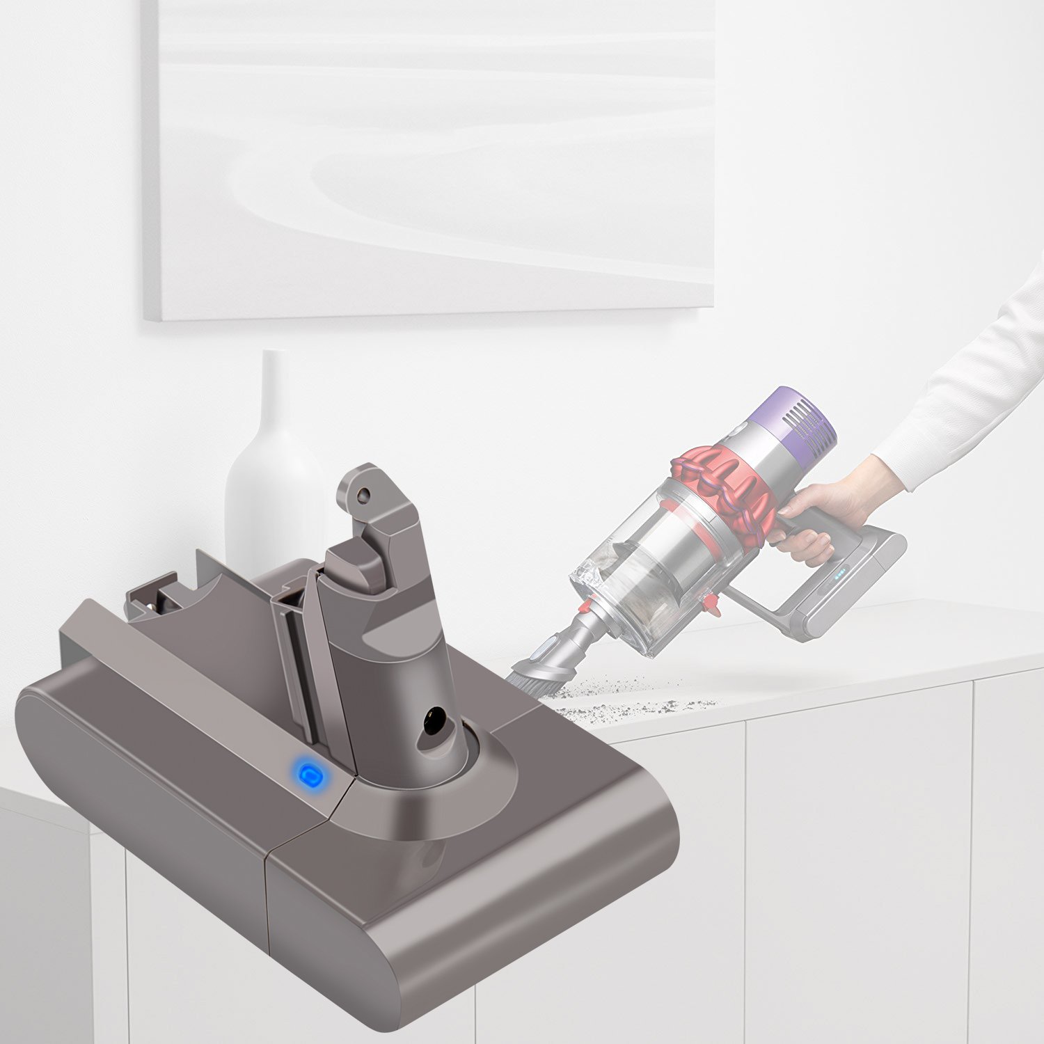 Hochleistungs-Akku mit neuen hochwertigen Markenzellen 100 % kompatibel mit den original Dyson-Akkus durch maßgefertigte Passform inklusive Überladungs- und Kurzschlussschutz.