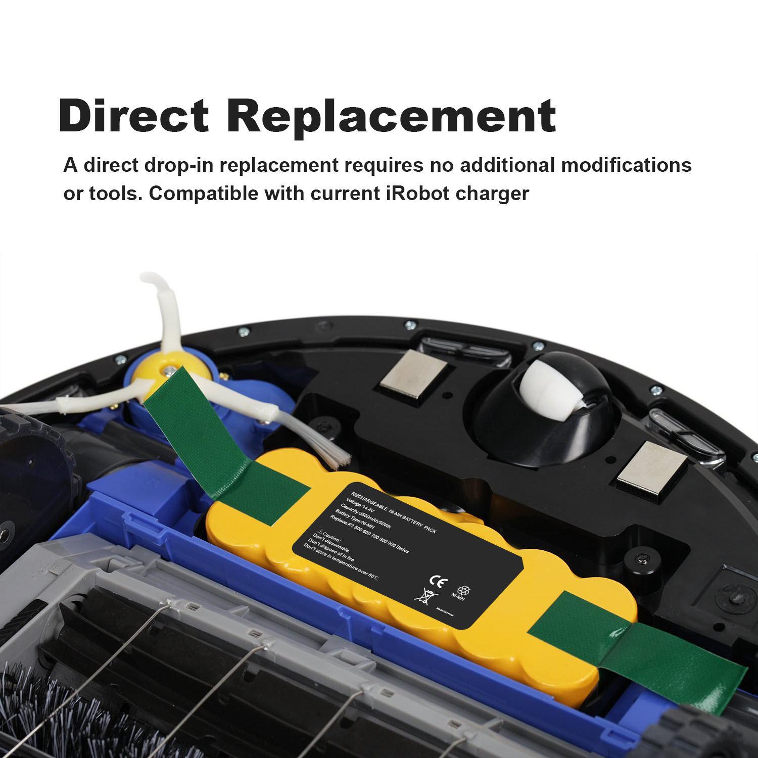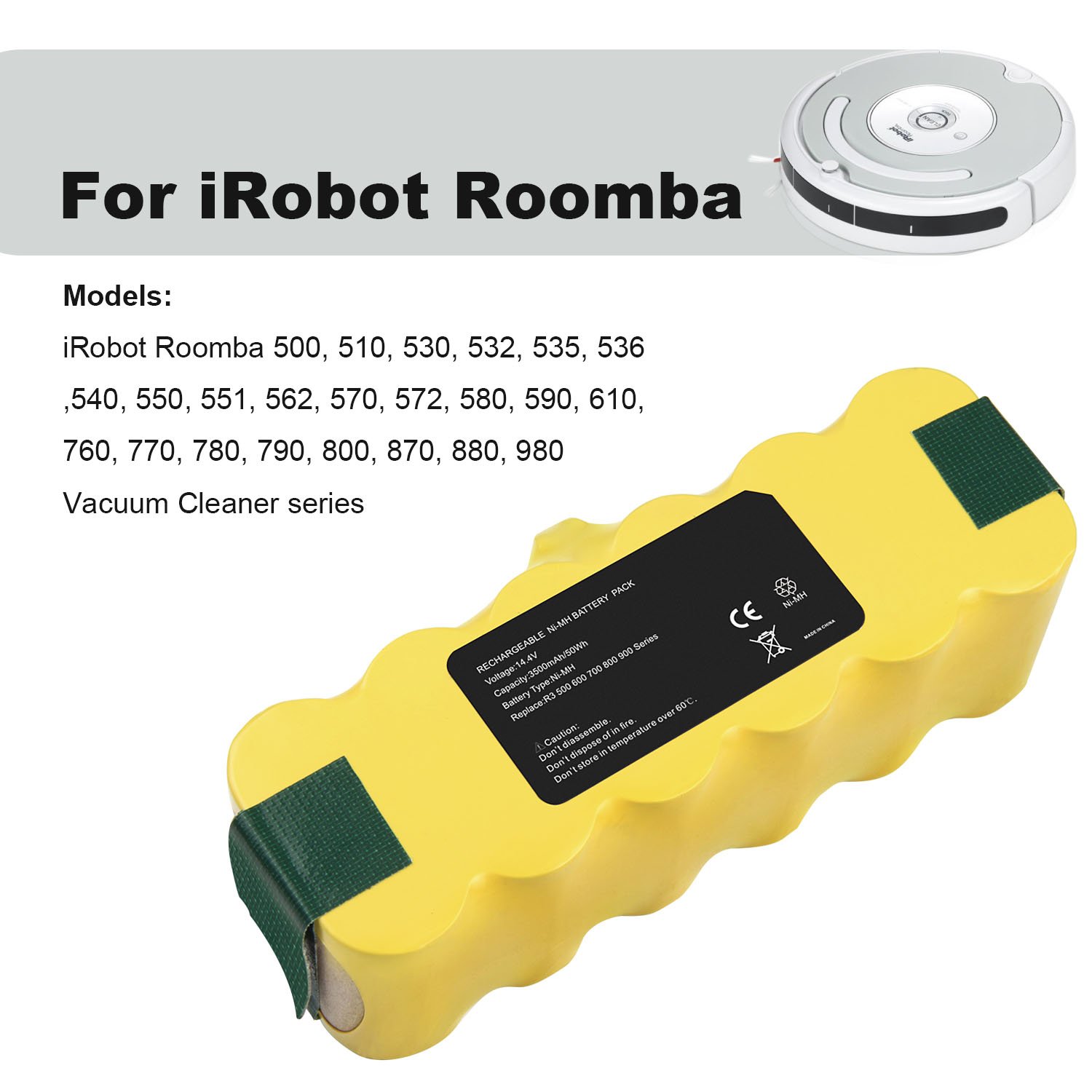 Hochleistungs-Akku mit neuen hochwertigen Markenzellen 100 % kompatibel mit den Original Roomba Akkus durch maßgefertigte Passform inklusive Überladungs- und Kurzschlussschutz. Die Ni-Mh Akkus lassen sich für u.a. für robotergesteuerte Akkubodenstaubsauger der iRobot 500er Reihe verwenden.