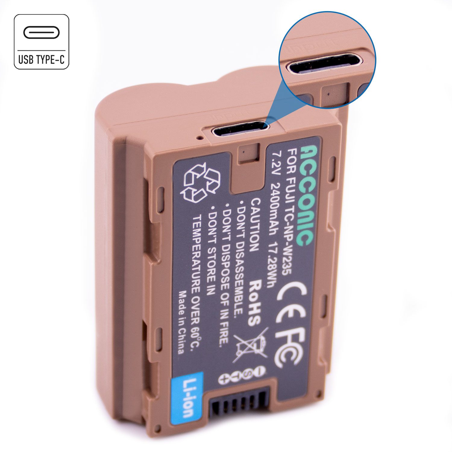 Acconic Akku mit USB-C Input für Fuji FinePix NP-W235 XT-4 XT4 NTC
