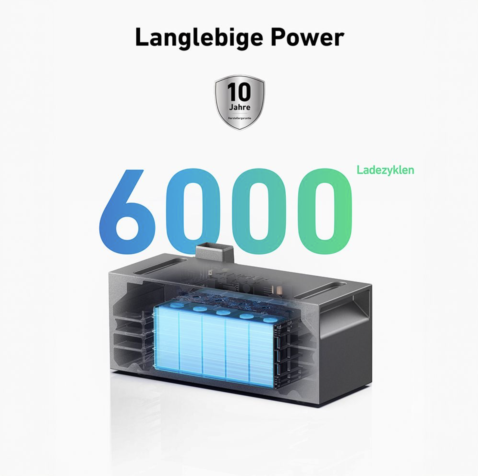 Mit der Anker Solix BP1600 Erweiterungsbatterie (MPN A17C03A1) erhöhst du die Speicherkapazität deiner Solix Solarbank um 1600Wh. Bis zu 5 Akkus können mit einer Solarbank verbunden werden und somit eine Gesamtkapazität von bis zu 9,6kWh bieten. Mit einer lang anhaltenden Lebensdauer von bis zu 6.000 Ladezyklen bieten die Akkus zuverlässig Energie. Die Batterie speichert den überschüssigen Strom, den dein Balkonkraftwerk erzeugt und der momentan nicht im Haushalt genutzt wird für den späteren Gebrauch.