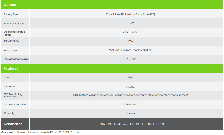 - Batterie-Typ: Kobaltfreies Lithium-Eisenphosphat (LiFePo4)