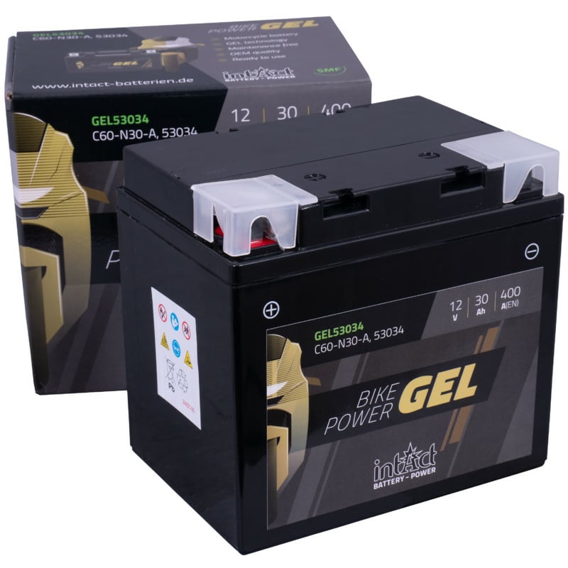 Intact GEL53034 Bike-Power GEL 30Ah Motorradbatterie (DIN 53034) C60-N30-A