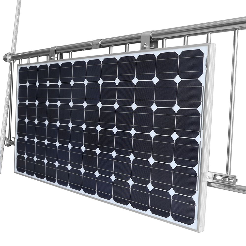 Dieses Set enthält alles was Sie brauchen um 1 Modul mit je max. 1,80m Breite an einem Balkongeländer zu befestigen. Durch hochwertigste korrosionsfreie Materialien aus Edelstahl und Aluminium ist eine sichere und langlebige Montage gewährleistet.