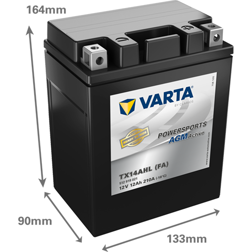 Produktinformationen "VARTA Powersports AGM ACTIVE TX14AHL (FA) YTX14AHL-BS 12Ah Motorradbatterie 12V (512919021)"