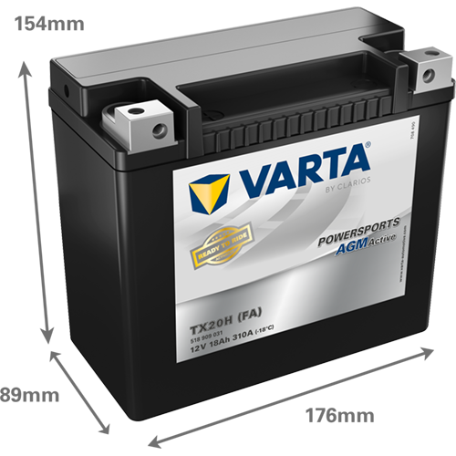 Produktinformationen "VARTA Powersports AGM ACTIVE TX20H (FA) YTX20H-BS 18Ah Motorradbatterie 12V (518909031)"