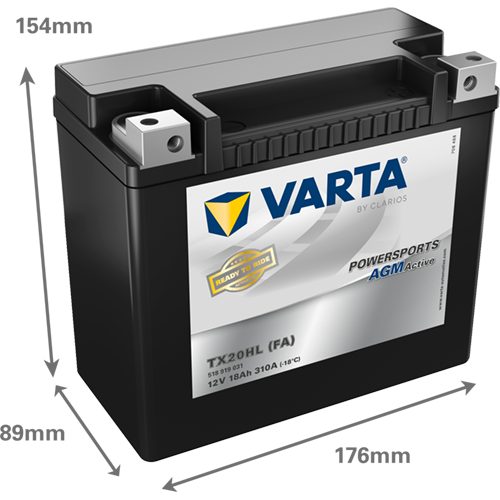 Produktinformationen "VARTA Powersports AGM ACTIVE TX20HL (FA) YTX20HL-BS 18Ah Motorradbatterie 12V (518919031)"