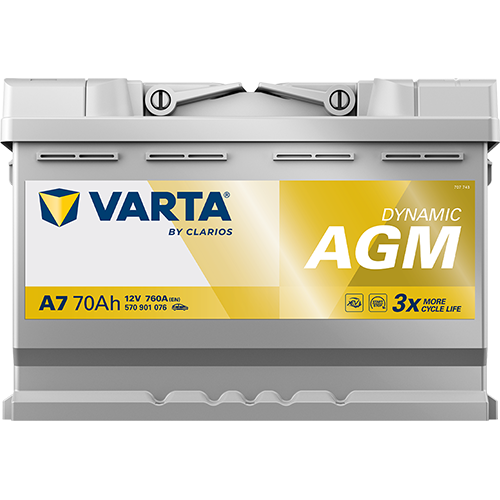 Varta A7 (E39) Dynamic AGM xEV 570 901 076 Autobatterie 70Ah (Silver Dynamic)
