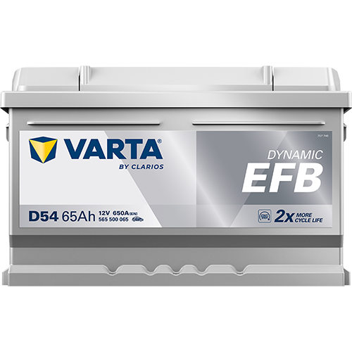Manche Start-Stopp-Fahrzeuge der Einstiegsklasse sind mit einer EFB-Batterie ausgestattet. EFB-Batterien sollten immer durch ein identisches Originalersatzteil ausgetauscht werden, z. B. durch eine Varta D54 Blue Dynamic EFB 565 500 065 Autobatterie 65Ah.