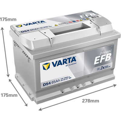 Start-Stopp-Systeme der Einstiegsklasse sind normalerweise mit einer EFB-Batterie (Enhanced Flooded Battery) ausgestattet. Die Varta D54 Dynamic EFB 565 500 065 Autobatterie 65Ah ist die ideale Wahl für Fahrzeuge mit überdurchschnittlichem Energiebedarf. Wenn Sie also nach einer Batterie suchen, die eine höhere Zyklenlebensdauer als eine konventionelle VARTA Batterie bietet, liegen Sie mit der Varta D54 Dynamic EFB 565 500 065 Autobatterie 65Ah genau richtig.