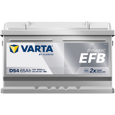 Manche Start-Stopp-Fahrzeuge der Einstiegsklasse sind mit einer EFB-Batterie ausgestattet. EFB-Batterien sollten immer durch ein identisches Originalersatzteil ausgetauscht werden, z. B. durch eine Varta D54 Blue Dynamic EFB 565 500 065 Autobatterie 65Ah.