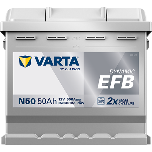 Manche Start-Stopp-Fahrzeuge der Einstiegsklasse sind mit einer EFB-Batterie ausgestattet. EFB-Batterien sollten immer durch ein identisches Originalersatzteil ausgetauscht werden, z. B. durch eine Varta N50 Blue Dynamic EFB 550 500 055 Autobatterie 50Ah.