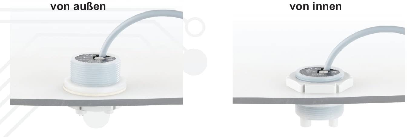 Als weitere Besonderheit können die Tankelektroden sowohl von innen als auch von außen auf der Tankoberseite montiert werden. Bei Frischwassertanks kann die Montage sogar an der Tankunterseite erfolgen.