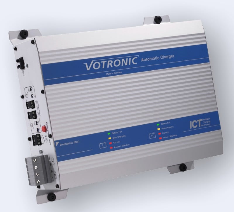 Der VAC Triple 60-15/30 Battery Charger von Votronic (MPN 0666) besteht aus einem 45A VAC-Netzladegerät und einem 60A VCC-Lade-Wandler inklusive Battery Trainer. Im Vergleich zum VBCS Triple ist anstelle des integrierten MPP-Solar-Laderegler ein intelligenter Ladestrom-Verteiler integriert worden, der den Ladestrom des Netz-Ladegerätes aufteilt und die Starter-Batterie mit einem Ladestrom von 15 A versorgt. solide Stromversorgung für Starter- und Versorgungsbatterien Auf diese Weise können höhere Lasten an der Starter-Batterie (Entertainment, Blaulicht, Martinshorn etc.) gepuffert und die Startfähigkeit des Fahrzeugs dauerhaft gewährleistet werden. Wird der hohe Ladestrom an der Starter-Batterie nicht mehr benötigt, stellt der Ladestrom-Verteiler diesen zusätzlich der Bordbatterie zur Verfügung. wesentliche Produktmerkmale des VAC-60-15/30 Triple Wie Baureihe VBCS Triple jedoch ohne MPPT-Solar-Laderegler Votronic Teilenumer 0666 Stattdessen mit intelligentem 15A Ladestromverteiler Integrierter VCC Ladewandler (Batterie zu Batterie) mit 60A Integrierter Batterietrainer für die lebensverlängernde Pflege Ihre wertvollen Batterien Integriertes VAC-Netzladegerät mit einer max. Ladeleistung von 45A Ladestromverteiler liefert hohen Ladestrom 12 V / 10A zur schnellen Ladung der Starter-Batterie und Versorgung der daran angeschlossenen 12 V Verbraucher bei Netz-Ladung inklusive Ladeerhaltung bei langen Standzeiten und integriertem Modul zur Batterie-Pflege deutlicher Preisvorteil im Vergleich zum Einzelkauf der integrierten Komponenten bietet Lademöglichkeiten sowohl für Versorgungs- als auch für Starterbatterien Elektronik feuchtigkeitsgeschützt kann alle gängigen Batterietypen, einschließlich Lithium Batterien laden Die Triple Geräte verfügen über Ladeprogramme für Blei-Säure, GEL und AGM Batterien und außerdem über 4 Ladeprogramme für Lithium Batterien, einschließlich eines Steuereingangs für den Anschluss eines LiFEPO4 Batterie-Management-Systems (BMS). massiver Preisvorteil gegenüber Einzelkauf der Komponenten Die großzügige Ausstattung der VAC Triple Geräte garantiert Ihnen im Vergleich zum Einzelkauf aller integrierten Komponenten eine solide Einsparung. optionales LCD-Fernbedienpanel verfügbar Wer auch im Cockpit die volle Kontrolle und Übersicht über sein Energiesystem haben will, der sollte sich das optionale Votronic 1247 LCD-Charge Control S ansehen. Es kann alle wesentlichen Informationen des VAC-Triple anzeigen und ist vom Format her passend zum restlichen Einbau-Panel Programm von Votronic. Lieferumfang: 1x Votronic 0666 VAC 60-15/30Triple Battery Charger 1x Bedienungsanleitung