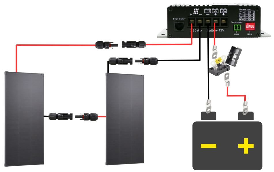 Sicherung zwischen Solarladeregler und Batterie, die gleichzeitig als Schalter zum Trennen der Module fungiert.