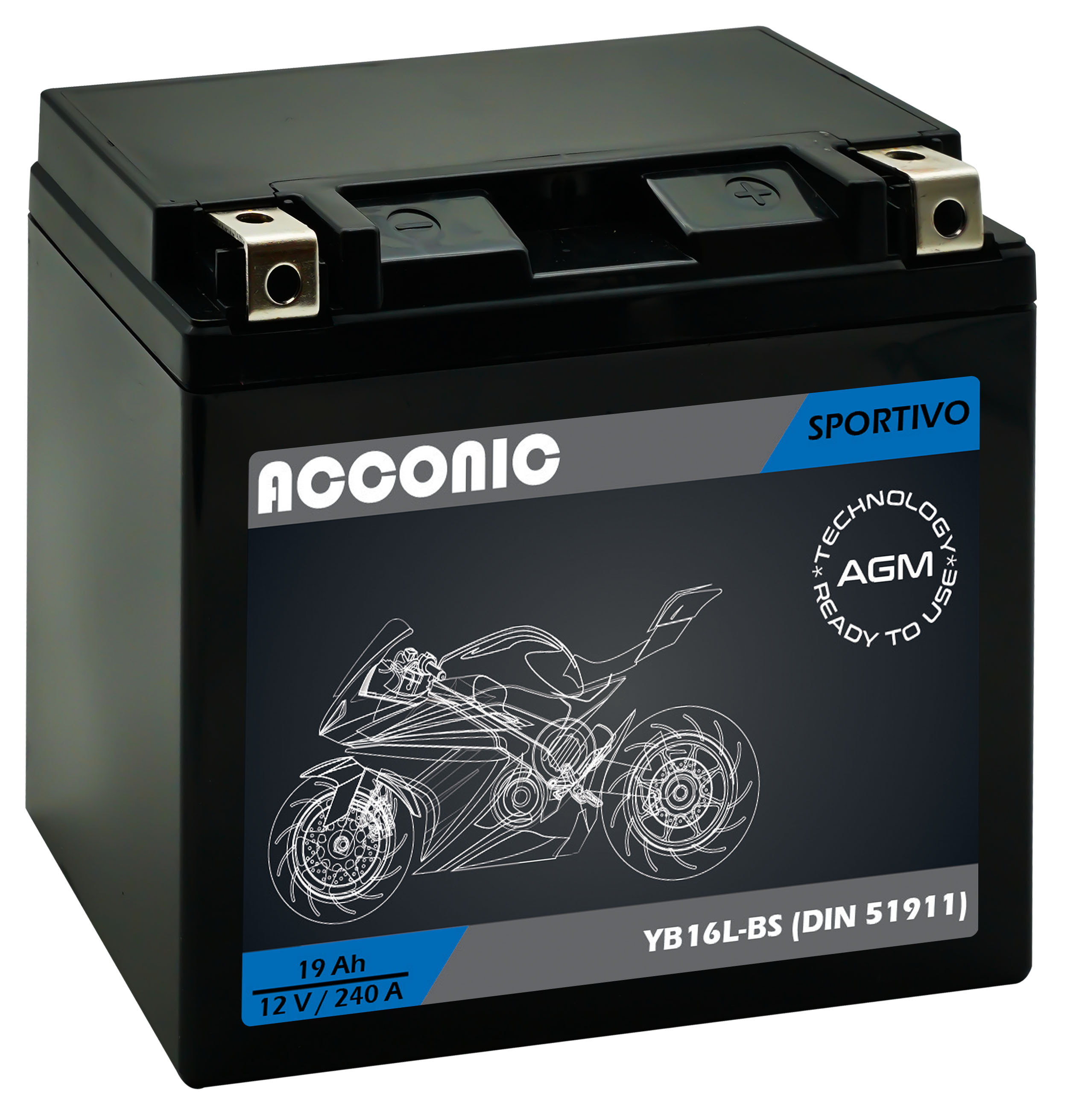 ACCONIC Sportivo AGM YB16L-BS Motorradbatterie 19 Ah 12V (DIN 51911)