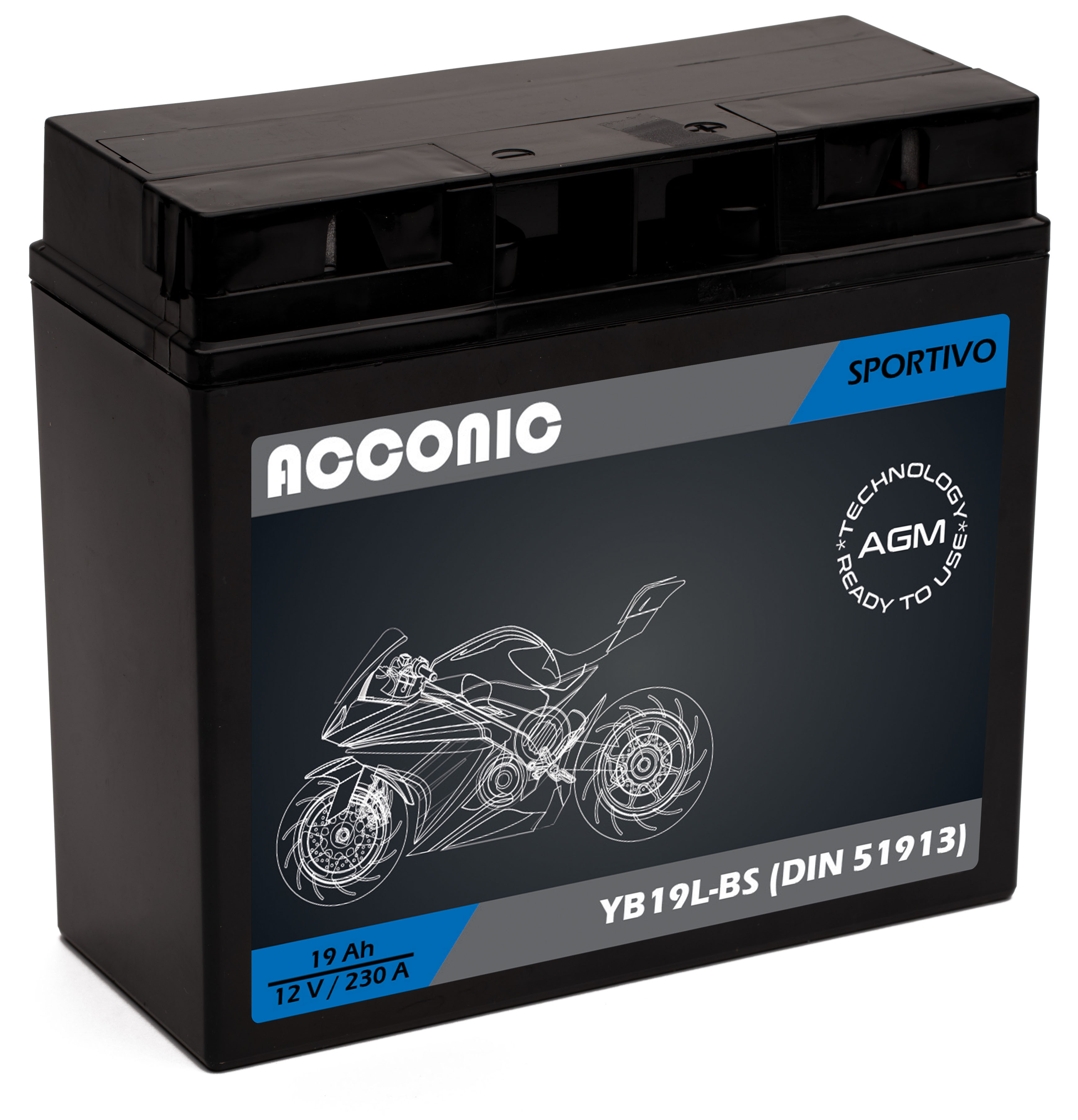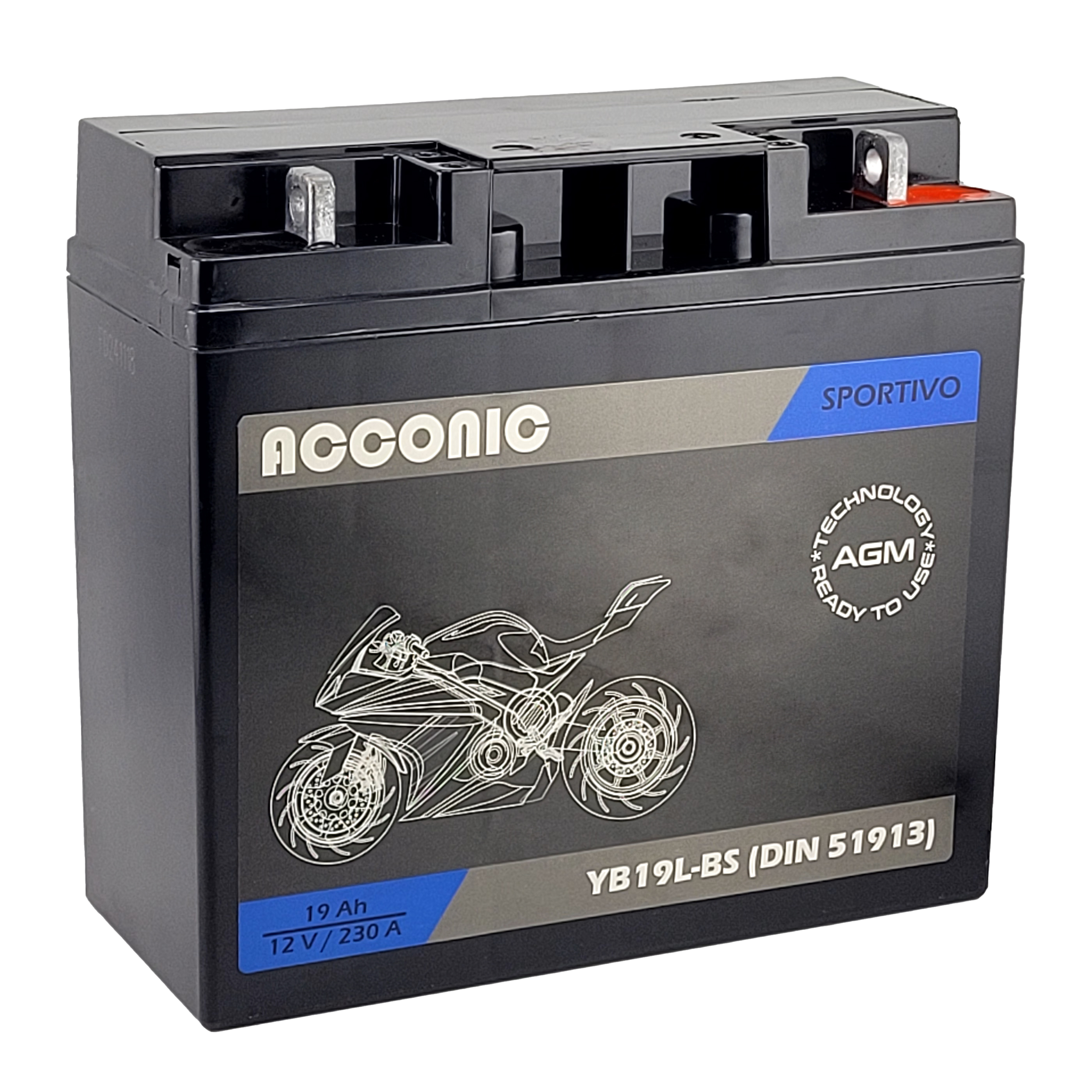 ACCONIC Sportivo AGM YB19L-BS Motorradbatterie 19 Ah 12V (DIN 51913)