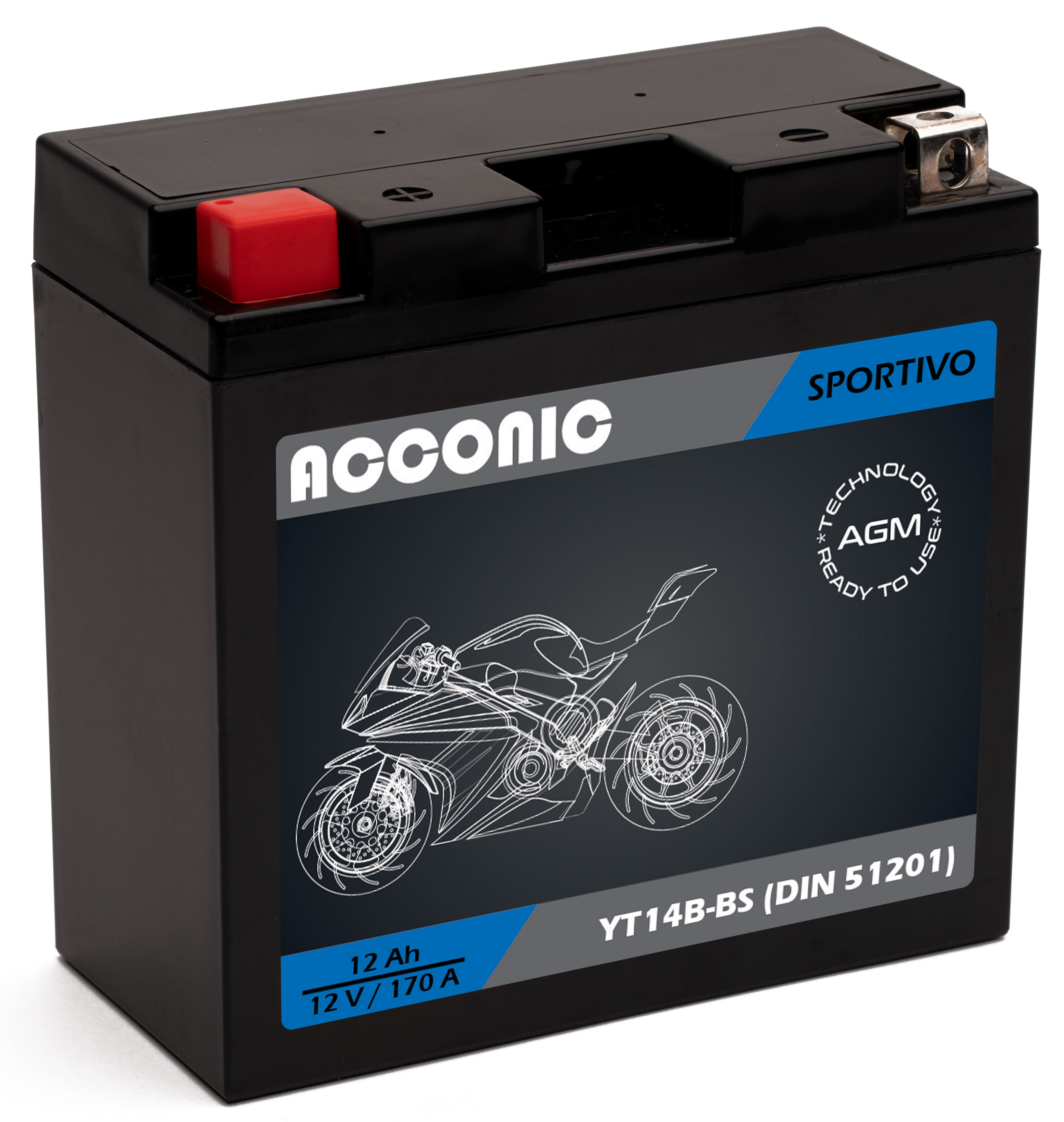 ACCONIC Sportivo AGM YT14B-BS Motorradbatterie 12Ah 12V (DIN 51201)