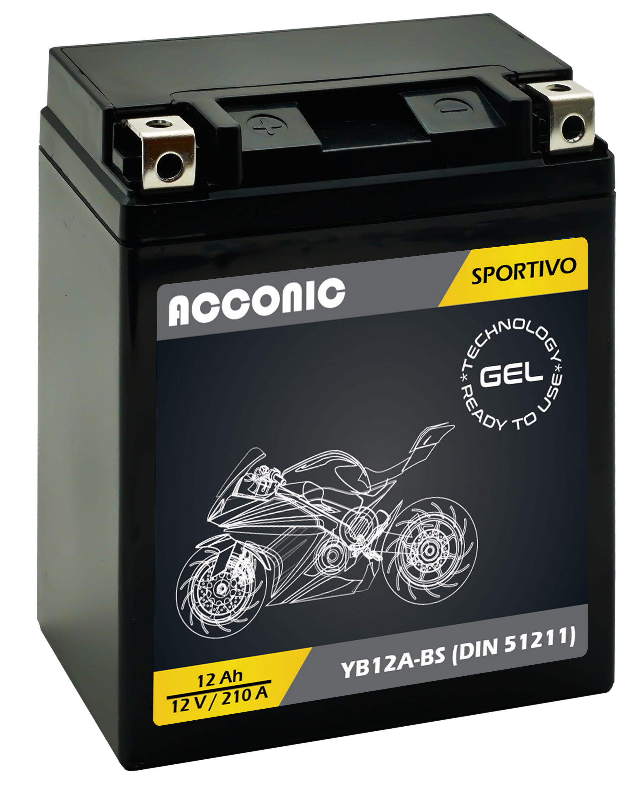ACCONIC Sportivo GEL YB12A-BS Motorradbatterie 12 Ah 12V (DIN 51211)