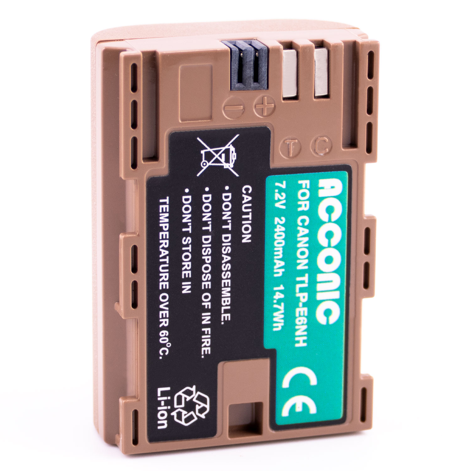 Acconic battery with USB-C input for Canon EOS R5 EOS R6 R6II R7 LP-E6NH NTC