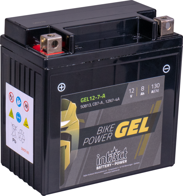 The Intact GEL12-7-A Bike-Power GEL 8Ah motorcycle battery (DIN 50813) 12N7-4A / YB7-A is the absolute top product in the motorcycle battery range. The Intact Bike-Power GEL series developed by Keckeisen with the latest GEL technology.