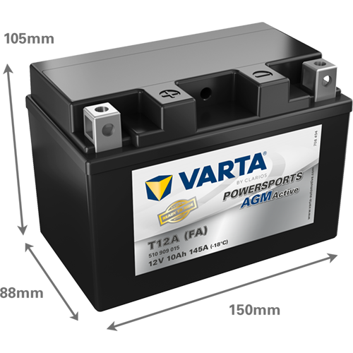 - 1x VARTA Powersports AGM ACTIVE YTX12-BS 10Ah motorcycle battery 12V (DIN 51012)