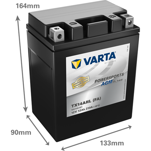 - 1x VARTA Powersports AGM ACTIVE YTX14-BS 12Ah motorcycle battery 12V (DIN 51214)