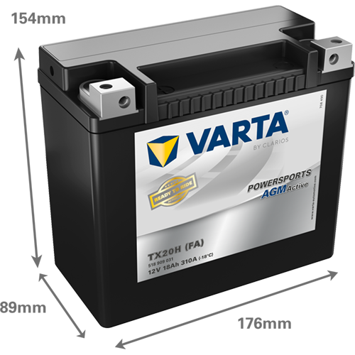 - 1x VARTA Powersports AGM ACTIVE YTX20L-BS 18Ah motorcycle battery 12V (DIN 82000)