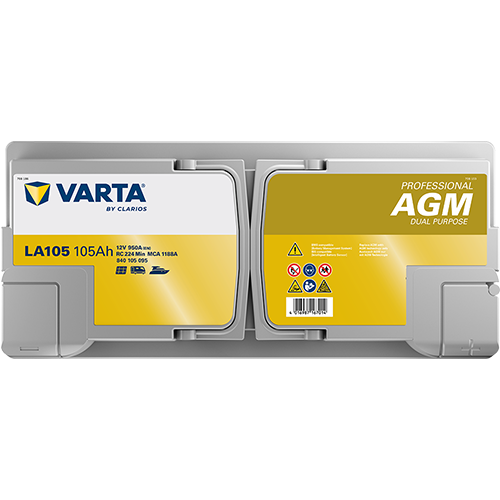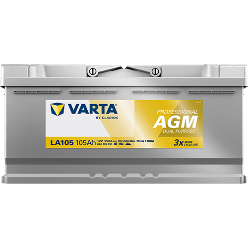 The VARTA LA105 Professional AGM battery is a 12-volt battery with a capacity of 105 Ah and a cold-start current of 950 A. This battery has been specially developed for the normal power requirements of motorhomes and boats. Here are some special features of this battery: